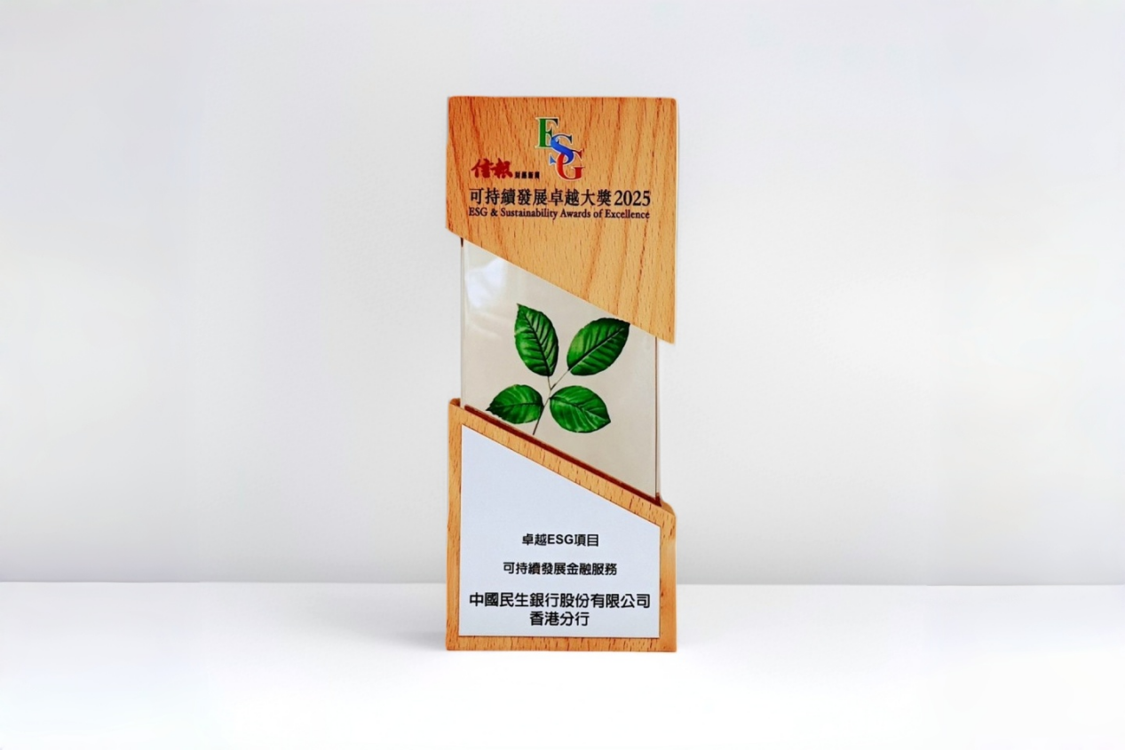 2025年11月13日,《信报财经新闻》(“《信报》”)举办“ESG可持续发展卓越大奖2025”颁奖典礼,以表彰将可持续发展理念贯彻于核心战略并在绿色转型中表现卓越的企业。凭借在可持续金融服务领域的卓越表现,民生银行香港分行荣获《信报》颁发“卓越ESG项目-可持续发展金融服务”奖。